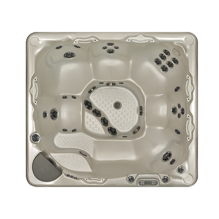 La finition acrylique métallique améliorée offre une sensation haut de gamme à la surface de votre spa. Cette finition Acuralux aux galets est luxueuse au toucher et capte la lumière avec ses facettes miniatures intégrées dans le matériau, donnant un éclat de type flocons de métal.